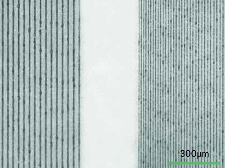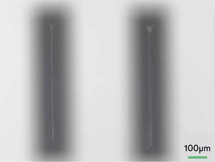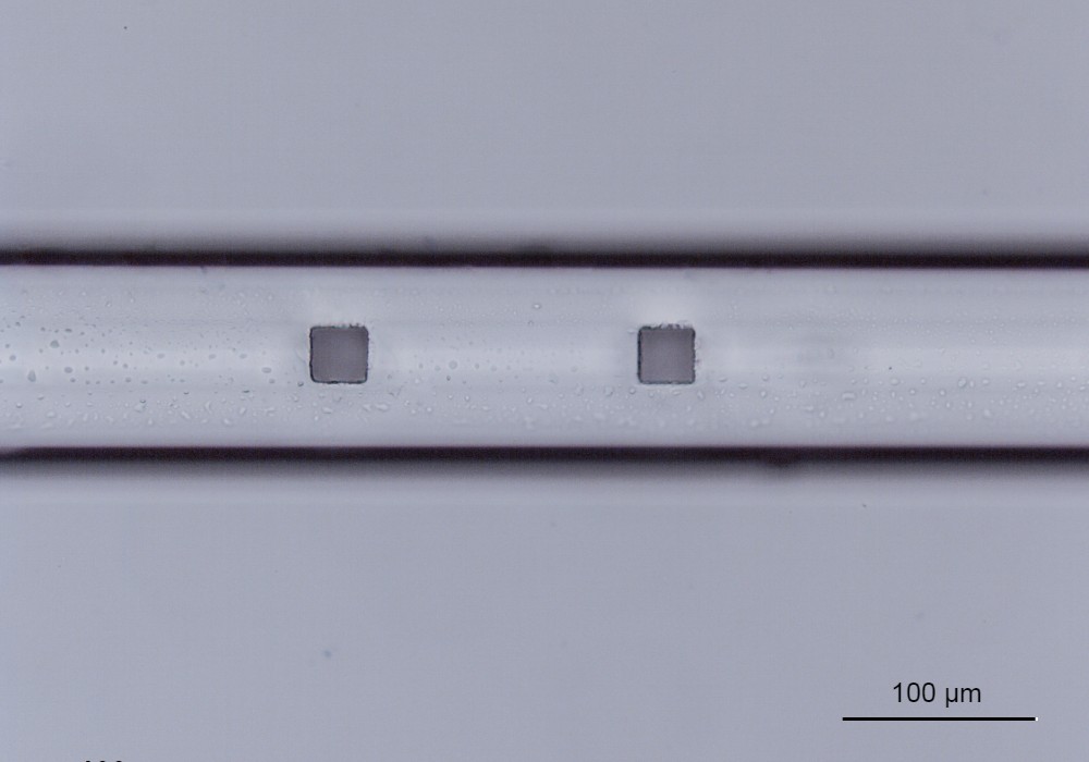 烧蚀 100 μm 狭缝并进行 20 倍蒸汽清洁后的 500 μm 厚 Borofloat 33 玻璃样品,俯视图