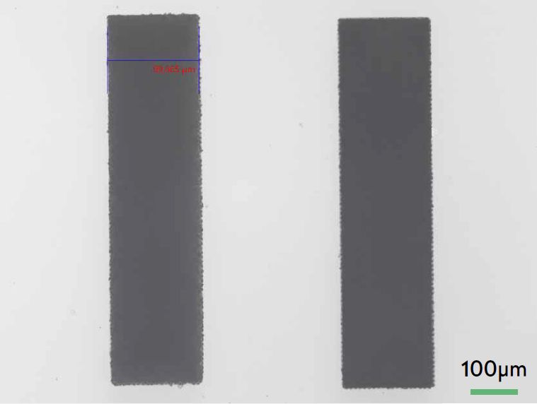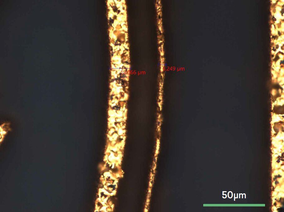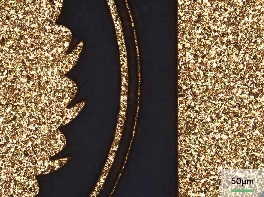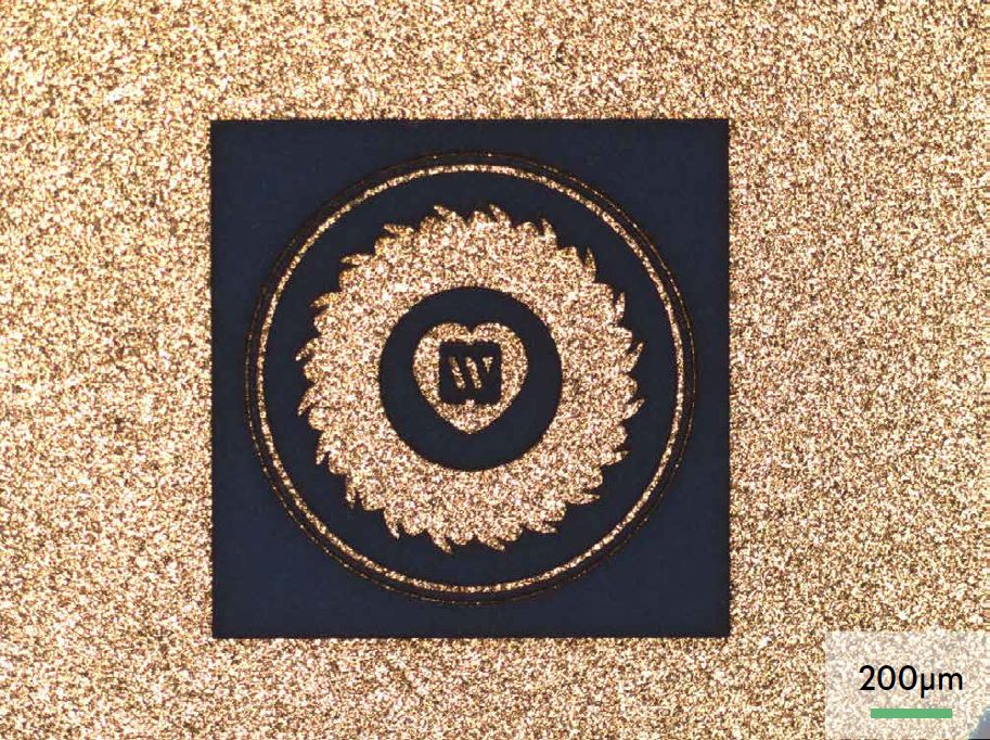 激光打标|选择性去除金层。金,厚度~10 μm,底层陶瓷基板
